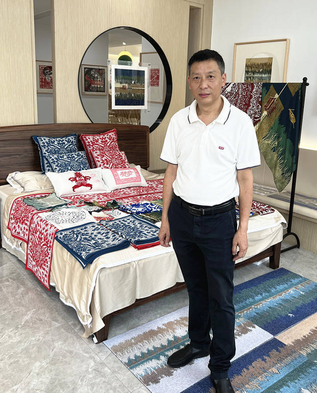 这种剪纸与丝绸的融合是从新的视角重新审视非遗艺术的文化内涵,也是瑞帛汇丝绸有限公司董事长屠霁彦为家乡展览付出的心血,是他缘定情丝的真切流露。